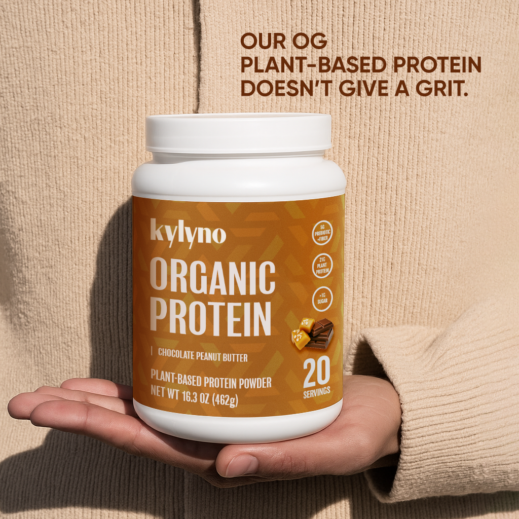 Meet the most versatile ingredient in your pantry—Kylyno Plant-Based Protein Powder in Creamy Chocolate Fudge. Each serving packs 21g of vegan protein and 7g of prebiotic + fiber for digestive support. It’s easy on your stomach, and even easier to add to your favorite dishes for an extra serving of protein to your day. Crafted with real ingredients for decadent fudgy flavor, it’s like hiding nutrition in your own food. So whether you want to shake it or bake it, go ahead and have your chocolate cake without the guilt.